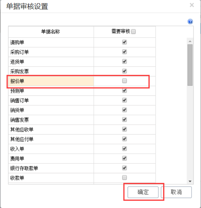 1、左边模块列表点击系统管理---单据审核设置(已报价单为例)